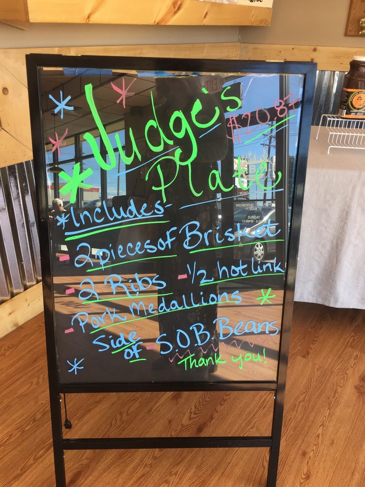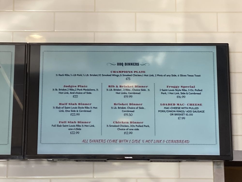 1/4 lb brisket, 3 ribs, 1/2 hot link, choice of one side and cornbread